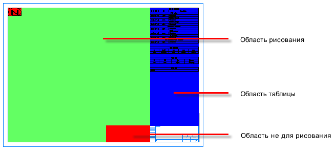 Чтобы определить область не для рисования, на ленте щелкните "Область не для рисования" и нарисуйте прямоугольник (красный), перекрывающий зеленую область рисования. Изометрический чертеж не сможет выйти за установленные рамки.