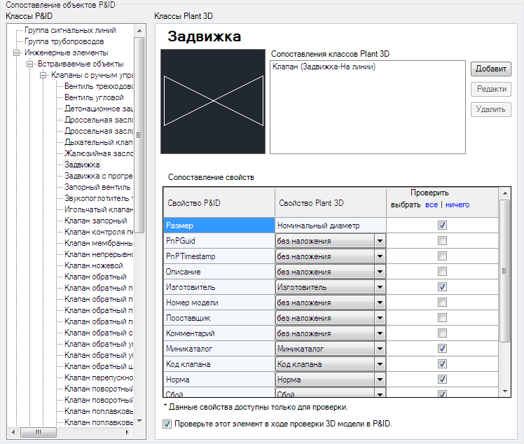 При внедрении в проект нового класса объекта P&ID его можно сопоставить с соответствующим классом объекта Plant 3D.
