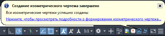 Щелкните значок изометрических чертежей в строке состояния, чтобы открыть диалоговое окно "Результаты создания изометрии".