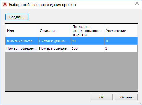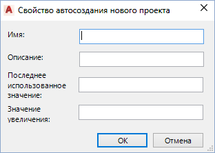 В диалоговом окне "Свойство автосоздания нового проекта" выполните следующие действия.