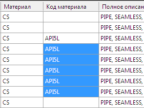 3. В таблице выберите ячейку и введите нужное значение. Например, в столбце "Код материала для 2 дюймов" укажите API5L.