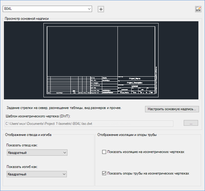 Позволяет настроить блок заголовка для изометрических чертежей.