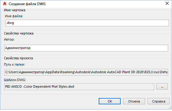 В диалоговом окне "Создание файла DWG" выполните следующие действия.