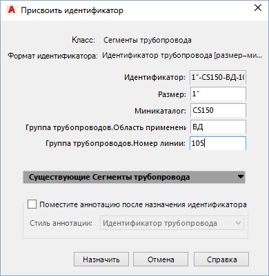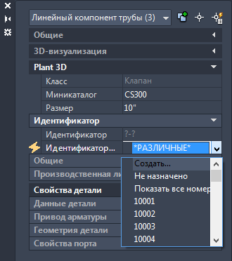 Список "Идентификатор номера линии" невозможно задать с помощью палитры свойств, если выбранная труба не присоединена.