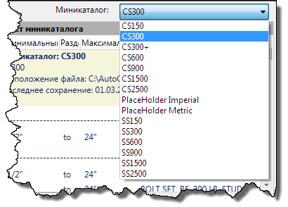 В раскрывающемся списке выберите миникаталог трубы (например, CS300).