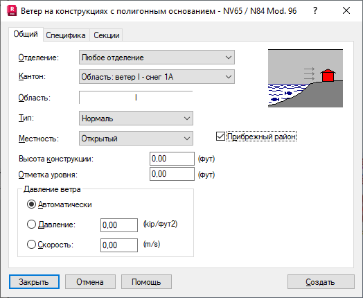 Ветровые нагрузки на осесимметричные конструкции - Параметры
