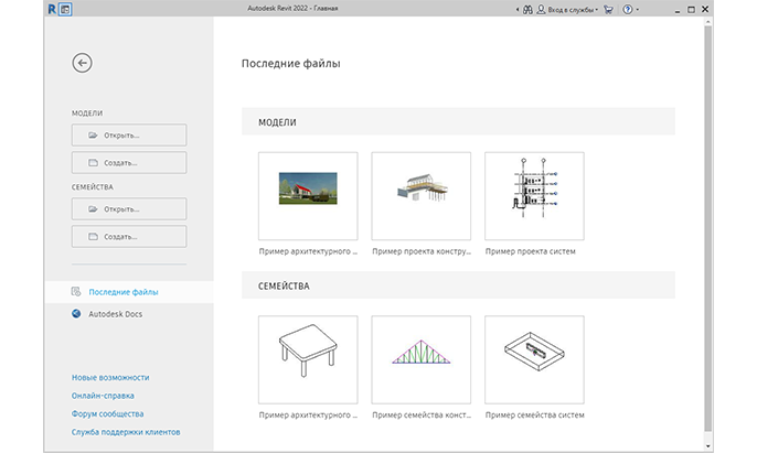 Обновления главной страницы Revit обеспечивают единообразие при работе с учетной записью Autodesk Docs и навигации по проектам в различных программах Autodesk, например Revit и Civil 3D.