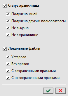 Файлы, отображаемые в обозревателе хранилища, можно фильтровать с помощью меню "Фильтр".