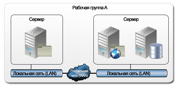 Эти рисунки показывают одну рабочую группу в целях упрощения. Однако может быть несколько настроенных рабочих групп.