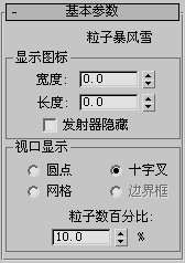 可以在粒子系统的“基本参数”卷展栏的“显示图标”组中设置发射器参数。