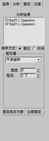- 显示分析器对选定躯干部位发现的所有错误。Biped 对象名称在错误的帧序号之前。单击错误会在曲线视图的帧中以黄线显示错误。双击错误会移动当前帧以匹配错误帧序号:视口也显示帧。