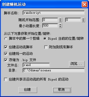 打开此项来创建每个 Biped 的随机脚本,该 Biped 共享了当前 Biped 的运动流。