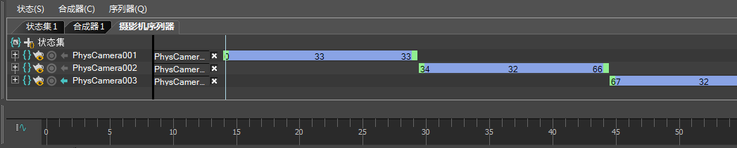 视口下方的窗口,有一个轨迹窗口显示正在使用的摄影机以及在它们处于活动状态期间的帧范围。