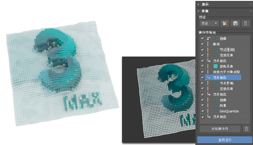 该组中的操作符对流过堆栈的数据执行操作。在“数据通道参数”卷展栏中,单击“添加操作符”从列表中选择进程操作符。