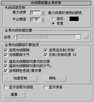 “全局光线跟踪引擎选项”组