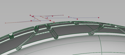您可以使用此脚本帮助设计和创建轮辐几何体。执行此脚本会生成参考轮缘几何体,包括轮缘内的对称区域,它们用于为生成的轮辐几何体的比例和位置提供参考。可以在构建点的位置或在视口的原点 (X=0, Y=0, Z=0) 处生成参考轮缘几何体。