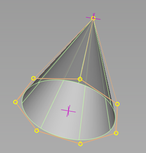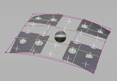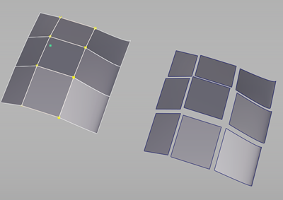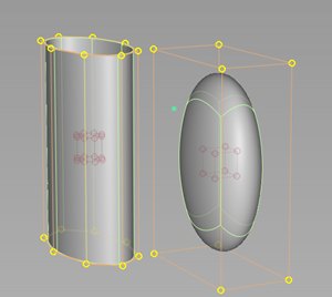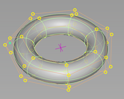 修改输入细分对象,或者(可选)修改其 CV 的子集。修改基于选定参考曲面与修改后的参考版本之间的差异。