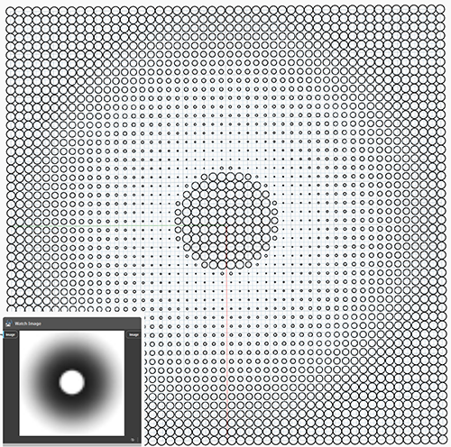 使用此脚本可以放置和缩放使用“Create Picture”脚本创建的图像。此脚本使用图像来控制圆或选定曲线的缩放。例如,图像越亮,曲线的缩放比例越高,图像越暗,曲线变得越小。然后,这些曲线将用于在参考曲面中修剪孔。
