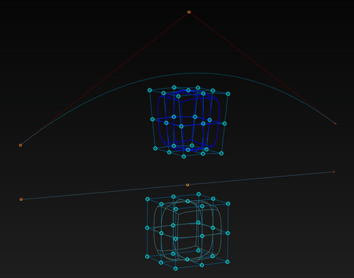 修改输入细分对象,或者(可选)修改其 CV 的子集。修改基于选定参考曲线与曲线的修改版本之间的差异。