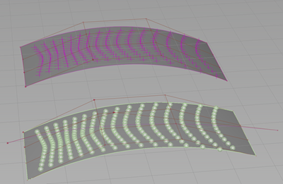 由于点图案具有历史,因此缩放曲面会影响该图案。DP-Multi-Surface-Patterning-One-Guide-Curve 脚本用于将点图案传输到目标曲面。