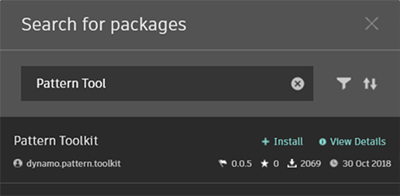 打开 Dynamo,选择“Packages”>“Search for a Package”,然后在搜索区域中键入文本。