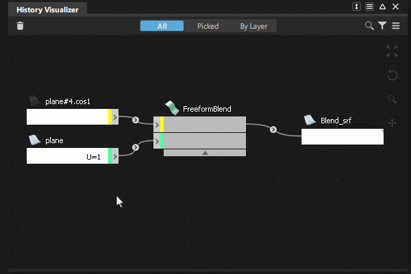 打开“History Visualizer”,在此窗口中,场景中对象的构建历史显示为包含连接的输入几何体、工具命令以及输出节点的节点图。