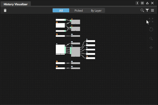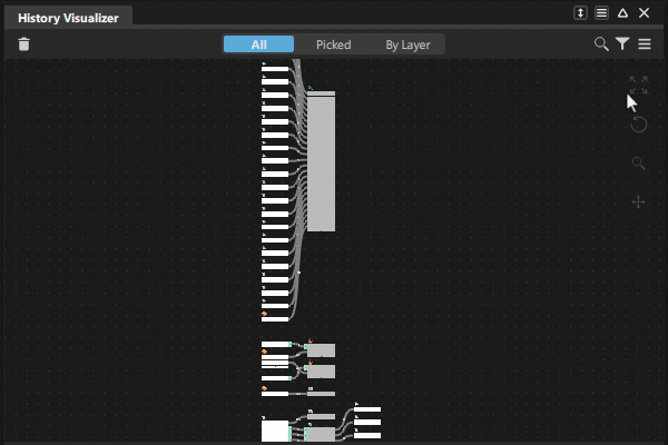 在“History Visualizer”工作空间中,可通过多种方法排列节点,以便保持整洁并充分利用可用空间。