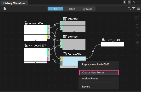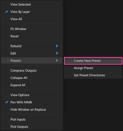 在节点上单击鼠标右键,然后从关联菜单中选择“Create New Preset”。