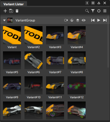 要显示变体,请在“Variant Lister”中单击相应的变体缩略图。