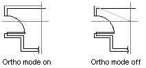 As you move the cursor, a rubber-band line that defines the displacement follows the horizontal or vertical axis, depending on which axis is nearest to the cursor. AutoCAD ignores Ortho mode in perspective views, or when you enter coordinates on the command line or specify an object snap.