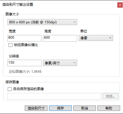 - 在渲染到“渲染”窗口时,指定渲染图像的输出尺寸和分辨率。