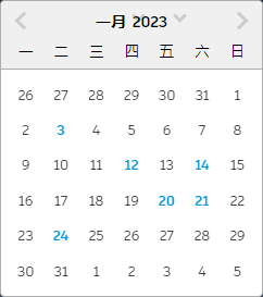 - 自定义 - 显示用于选择两个或多个日期的日历。指定的日期将以蓝色亮显。