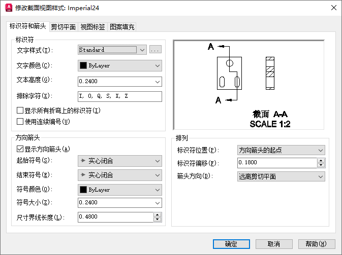 “标识符和箭头”选项卡(截面视图样式管理器)