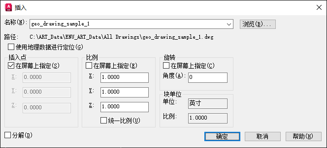 分解块并插入该块的各个部分。选定“分解”时,只可以指定统一比例因子。