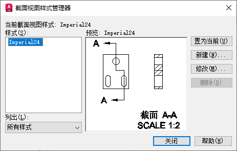 将“样式”列表中选定的截面视图样式设定为当前样式。使用此截面视图样式创建所有新截面视图。