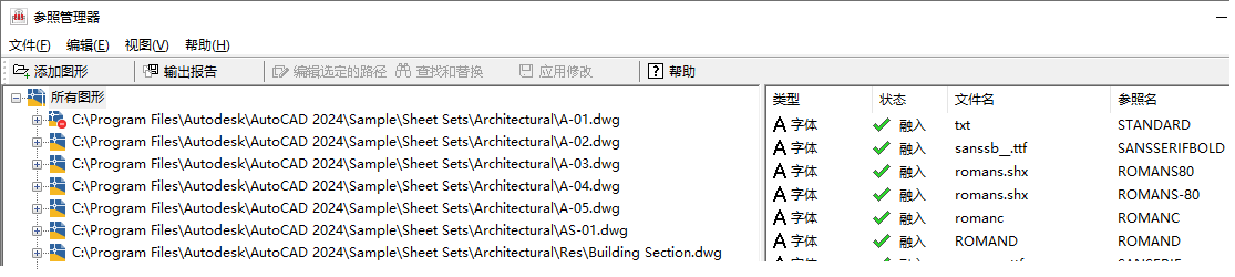 “参照管理器”是一款用于核查大量图形文件中是否缺少参照的出色工具。此外,在将文件发送给客户、同事或分包商之前,建议扫描图形文件以查找是否缺少参照。