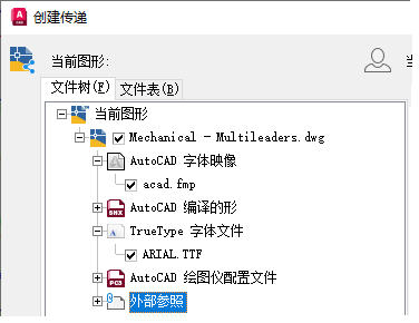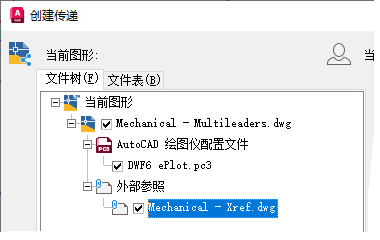 使用电子传递功能时,将扫描当前图形以查找任何参照文件,并在“创建传递”对话框中显示这些文件。
