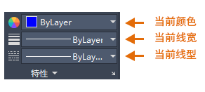 “特性”选项板占用大量空间。要快速访问最常用的特性,请使用功能区上的“特性”面板。如您所见,在此示例中,列出的特性全部由当前图层决定。