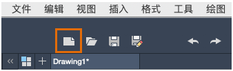 新图形 Drawing1 从绘图区域正上方的新选项卡开始。可以单击各选项卡以在多个打开的图形文件之间切换。单击加号,可使用默认样板开始绘制新图形。