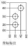 坐标标注由 X 或 Y 值和引线组成。X 基准坐标标注沿 X 轴测量特征点与基准点的距离。Y 基准坐标标注沿 Y 轴测量距离。
