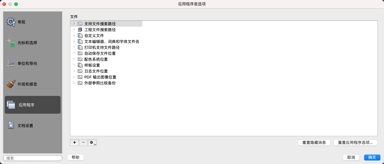 在重置程序前,可以自定义的许多文件被备份为归档文件,命名约定为设置备份<日期><时间>.tgz。归档文件的保存位置为 /Users/<用户名>/library/application support/autodesk