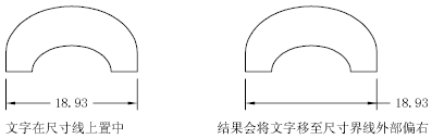可以将文字移动到新位置或返回其初始位置,后者是由当前标注样式定义的。下图中,初始位置在尺寸线上方且居中。