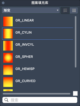 显示所有预定义和自定义图案以及渐变填充图案的预览图像。