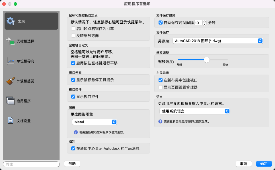 保存间隔分钟数:在“自动保存”为开的情况下,指定多长时间保存一次图形。(SAVETIME 系统变量)