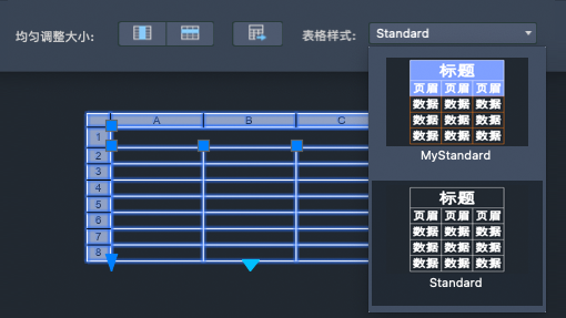 在“特性检验器”上,从“表格”部分的“表格样式”下拉列表中选择一种表格样式。