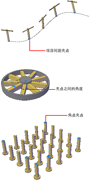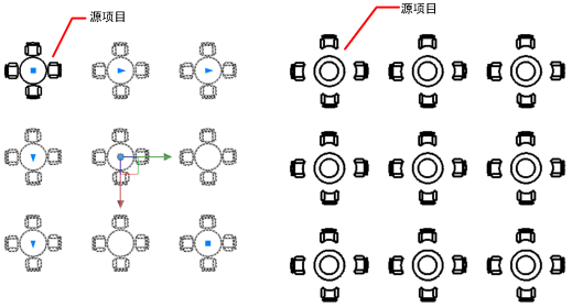 使用关联阵列的优势在于对阵列中的一个对象所做的更改可以影响阵列中的其他对象。可以使用多种编辑方法: