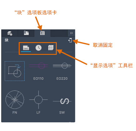 这将打开“块”选项板,并使其处于活动状态。默认情况下,该浏览器固定在应用程序的右侧。