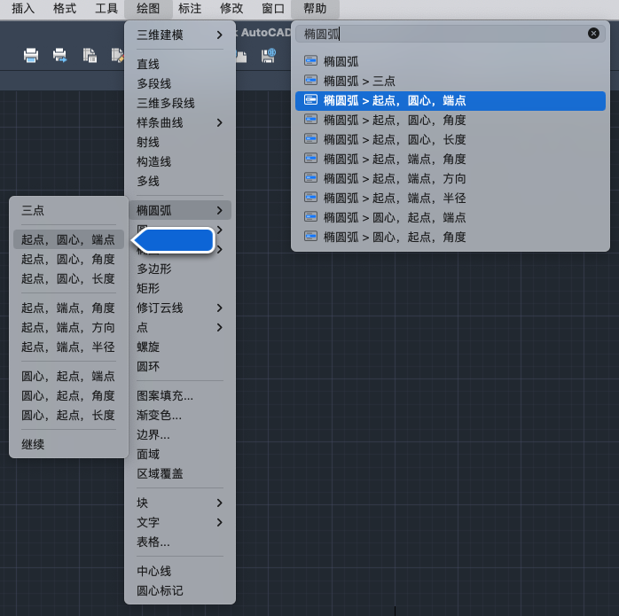 将光标悬停在列表中的某个命令上,箭头会指示其位置。