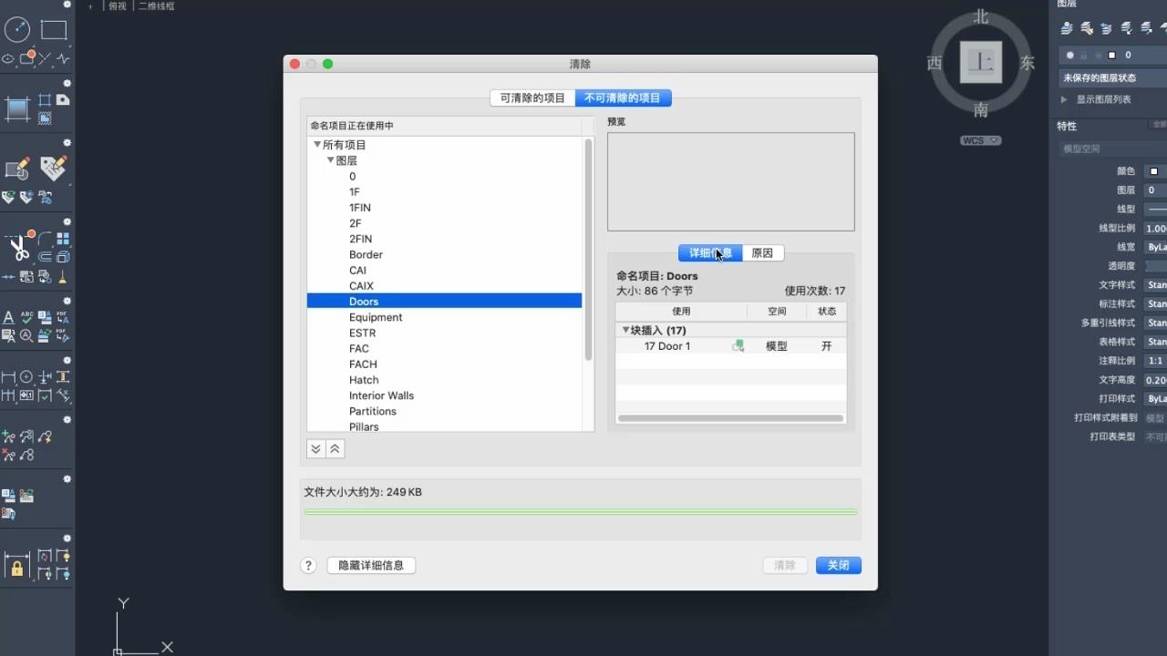 “清除”对话框可以显示不能清除的对象。在查看可清除项目列表和不可清除项目之间切换。