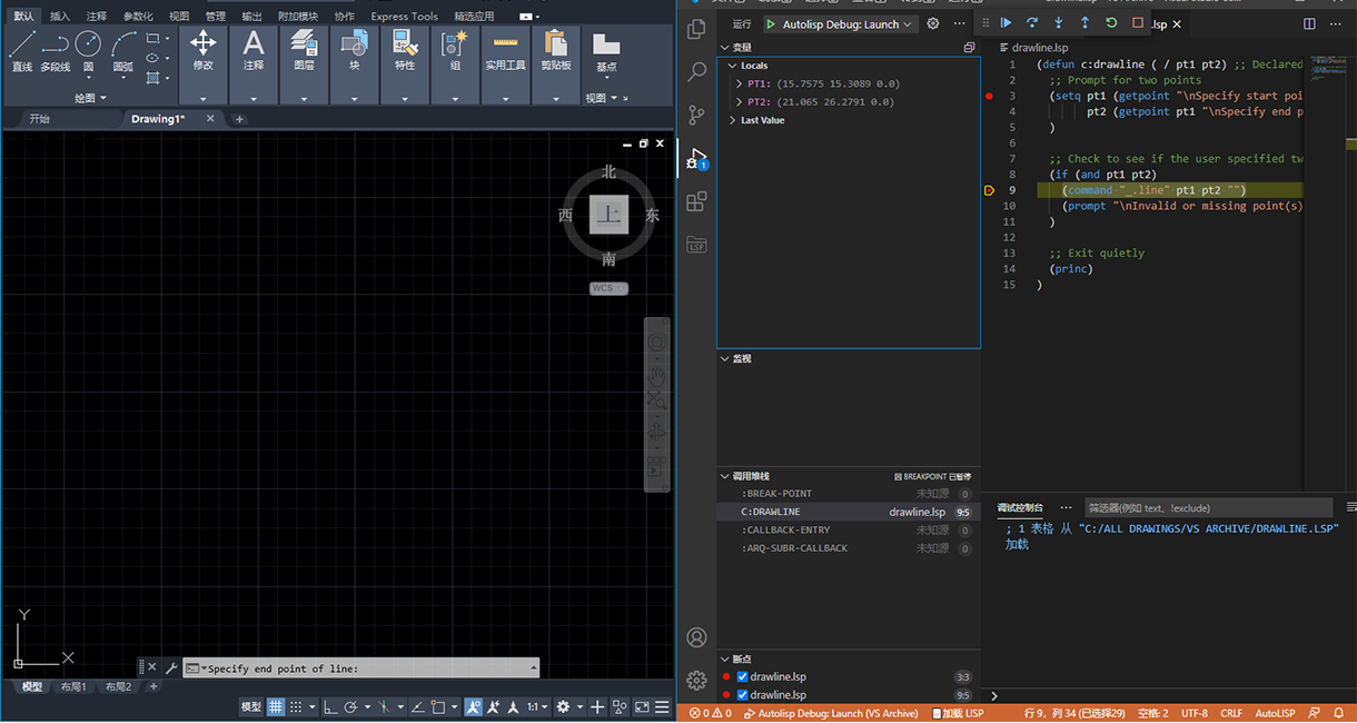 有关开始使用 VS Code 和 AutoCAD AutoLISP 扩展的信息,请参见 Visual Studio Code 快速入门。